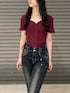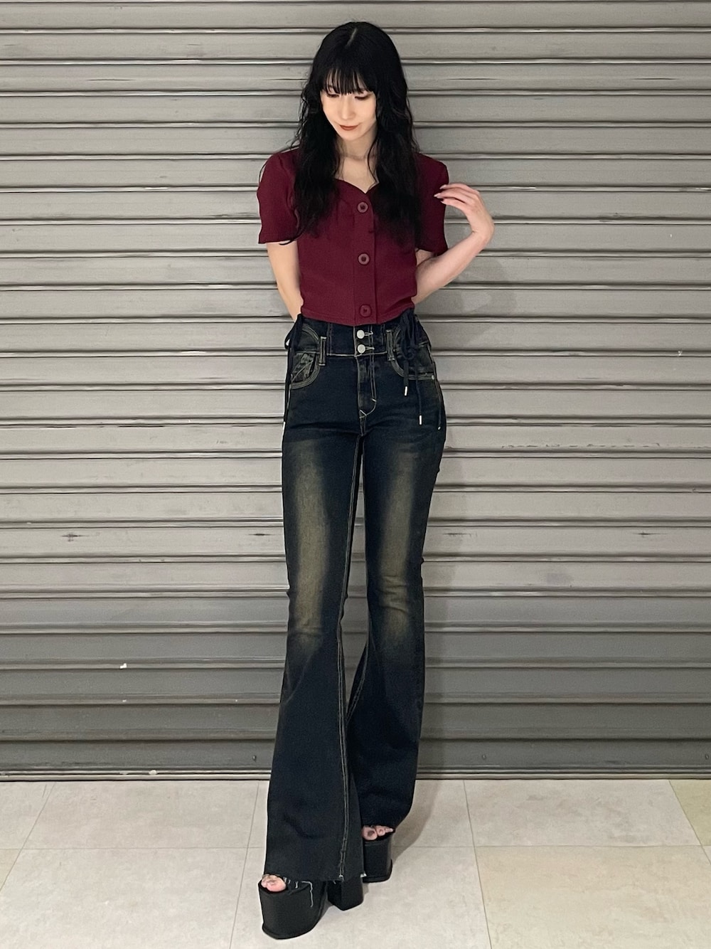 もうすぐ秋物も出始める季節ですが正直まだまだ暑い……🫠 そんな時は秋っぽい色から取り入れてみてはいかがでしょう😌✨✨ 濃すぎないワインレッドが肌を白く見せてくれますよ🍷 【tops】 158cmでおへそくらいの丈です。 デコルテを綺麗に見せられるハート♡型のカットになっています!開きが深めに見えるので、胸元がが不安…と思うかもしれませんが、ガバガバしないんです🥹✨(私も最初不安でしたが、着たら全く気になりませんでした!!!) 裾につれて身頃が少し狭まるので、着るだけでウエストを細く見せてくれます🥰 EMODAのハイウエストのフレアパンツと相性抜群ッッ💖💖 【denim】 158cmでXSサイズ着用です。 ウエスト部分にカットが入っていますが、位置が高く、開きは狭めなので露出度は高くないです!安心して着られますよ〜🙆♀️ ヒールは必要な長さですが、お家でカット可能です♡ 【shoes】 厚底好きにはたまらない14.5cmヒール! なのに高低差がなくてヒール履いてる感がないので歩きやすいです👍👍 普段22.5〜23.5cmでSサイズがぴったりでした。