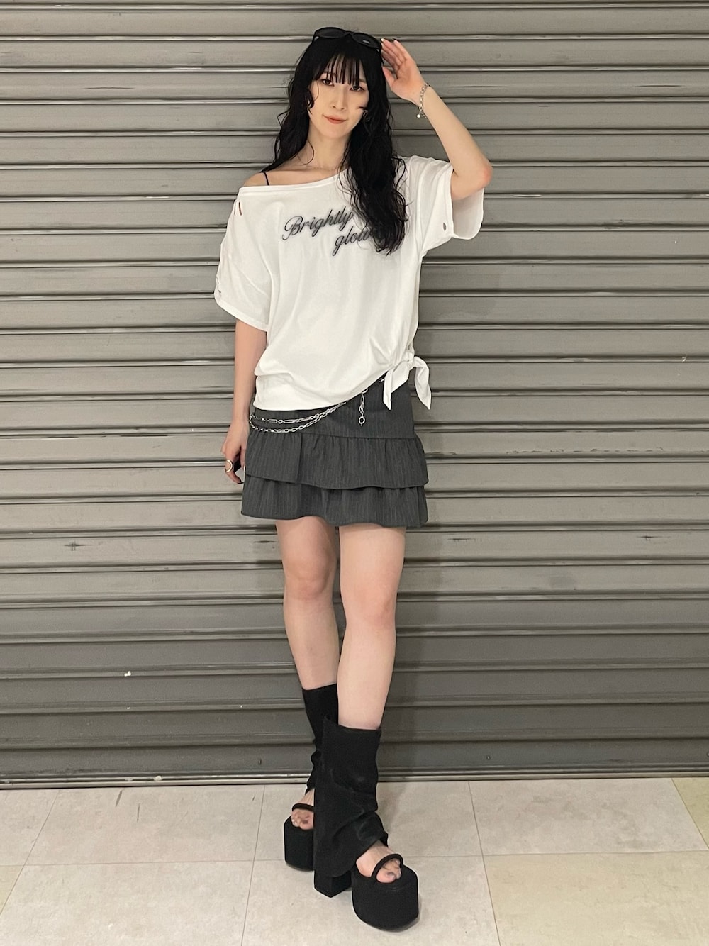 後藤茉子(EMODA)のTシャツ/カットソー「ルーズタイクラッシュTシャツ」を使ったコーディネート