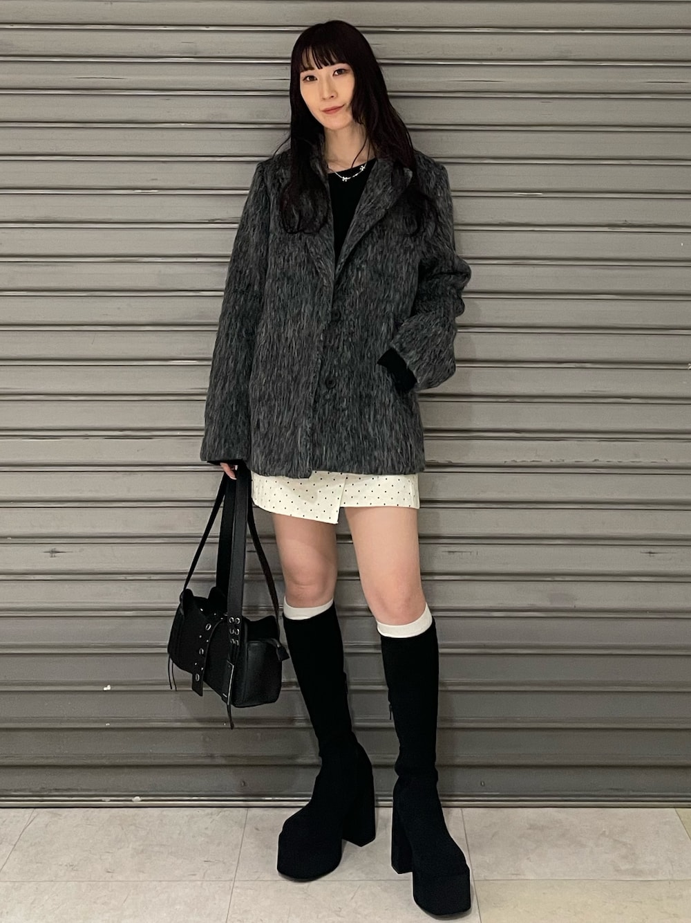 【outer】 158cmでお尻が隠れるくらいの丈でした! ジャケットライクなスッキリシルエットです! 袖はゆったりしていますが、肩周りはピタッとしているため、低身長でも着られてる感が出ません! 【tops】 丁度お下着の紐が出ないスリット位置なので、インナーを気にせず着られます♪ 158cmでおへそより少し下くらいの長さです! 【skirt】 158cmでSサイズ着用です! ベルトなしだと、おへそ下くらいのローウエストで履いていただけます☺️ 台形スカートって骨格ウェーブだと広がりすぎてしまって苦手意識があったのですが、腰からストンと落ちるようなミニマルなシルエットで良かったです!🥰 【boots】 普段22.5~23.5cmでSサイズ着用してます! 筒周りがタイトめで、引き締め効果抜群です!足首がきゅっと細く見えるので、ミニ丈合わせもオススメです★^^♪ 高低差があまりない厚底なので、「できるだけ盛りたい🥹」と「歩きやすい靴しか履きたくない😭」を両方叶えてくれます💫 私はこれでライブやテーマパーク、旅行でも余裕で履いて行けました☺️迷ってたら絶対ゲットしてほしいーー‼️‼️ ぜひ店頭で履き心地お試しください♪ 【bag】 600mlのペットボトルがすっぽり入って、拳ひとつ分余裕があるサイズ感です! チャックと磁石ボタンで、中身も安心です^ ^♪ 【accessory】 モチーフが鎖骨の間のくぼみにくるくらいの長さです! 細めのスネークチェーンで、リボンのデザインでも甘すぎない雰囲気でつけられます✨ 【belt】 指1.5本分くらいの細めの幅なので、コーデの邪魔をしない使いやすいサイズです! ウエストが細い方でもしっかり閉めていただけるので、なかなか合うベルトがない方は絶対これがオススメです🔥🔥