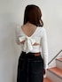 rina(EVRIS)のTシャツ/カットソー「【パッド付】2WAYバックリボンスクエアネックリブトップス」を使ったコーディネート