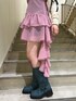Instagram @shuno_12sky 🖤上から重ねるだけで完成!甘辛MIXコーデ🩷 【ワンピース】 リボン、ドット、レースが施された、ガーリー全振りキャミワンピ🎀 左脇にファスナーが付いているので、着脱もとても簡単です! 【トップス】 タオルのような生地感で、ストレスフリーで着て頂けます!身長152cmでウエストラインくらいのクロップド丈になっています🌟 【スカート】 Jouetie のミニスカの中では短めです! 身長152cmで太ももの真ん中より上くらいの丈感です!ただ、中にパンツがついているので安心して着用していただけます💓 【ブーツ】 Mサイズを着用しています。普段は23cm or Mサイズのシューズを履いていますが、少しだけ大きめに感じました! とても軽くて履きやすいブーツです❣️ 【チョーカー】 チョーカーとしてだけではなく、ヘアアクセやブレスレットとしても使用可能です🌹 【ブレスレット】 ゴムなので着脱がとても簡単です!