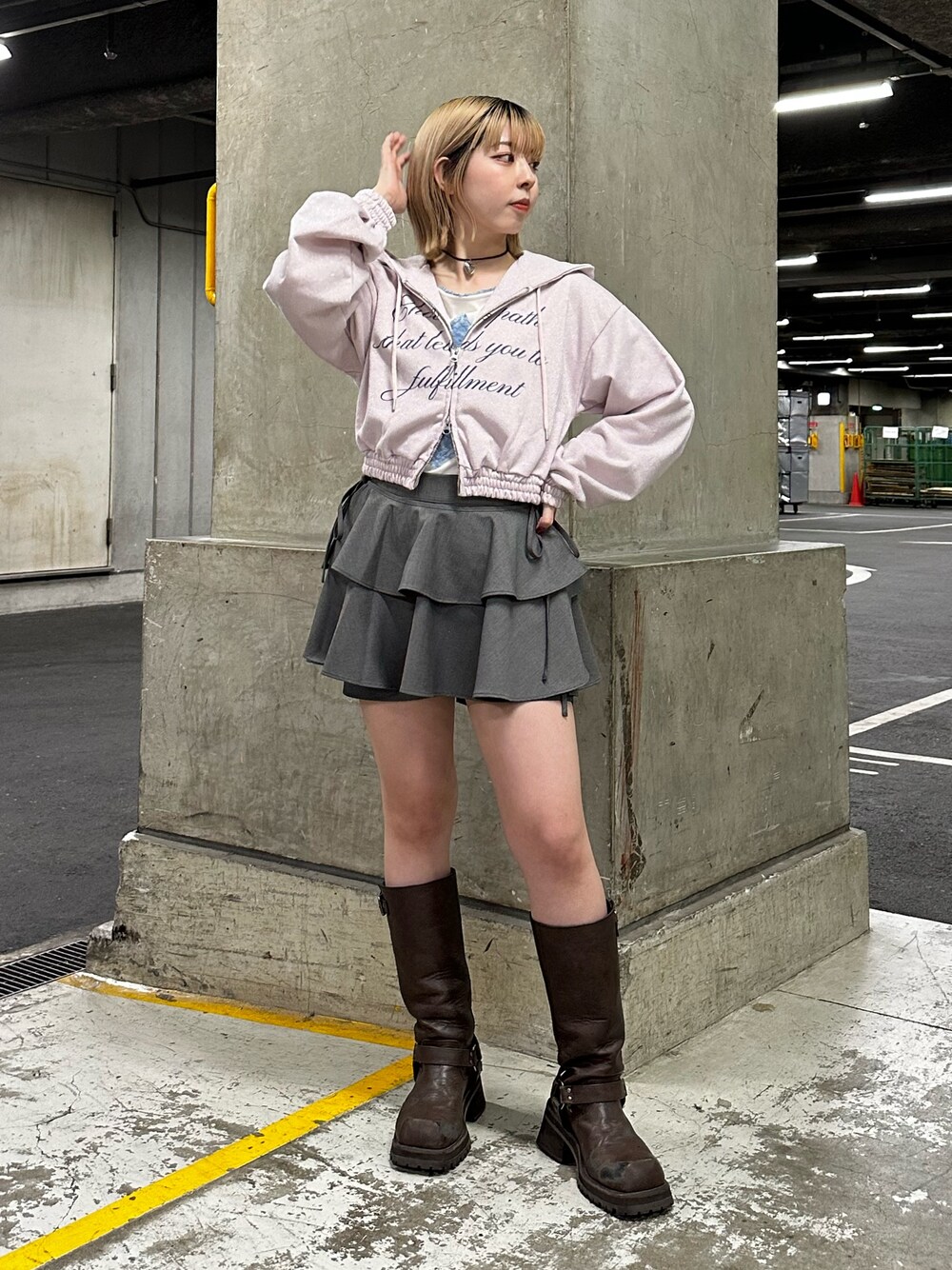Instagram @shuno_12sky 【アウター】 身長153cmで、ウエストラインの丈感です。カジュアルなスウェットにキラキラ素材を使用することで、ガーリーにも着こなせる1枚です✨ 季節の変わり目に、軽い羽織として活躍しそうです! 【トップス】 首周りが少し開いたデザインなので、顔周りをスッキリ見せてくれます! レースデザインなので可愛くもカッコよくも着用いただけます🩵 【スカート】 身長153cmで、足の付け根の少し下くらいの、ミニ丈となっています。短めですが、パンツが部分がしっかり見えるデザインになっているので安心して着用いただけます! 【ネックレス】 シンプルなハートデザインなので、幅広いジャンルのコーデに合わせていただけます♡ 【ブーツ】 足のサイズは23cmですが、Lサイズを着用してます!Mサイズよりもふくらはぎ周りにゆとりができ、細見えします★