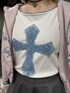 SHUNO(jouetie)のTシャツ/カットソー「クロスレースドッキングTシャツ」を使ったコーディネート