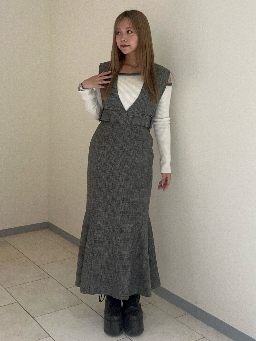 山本莉子(MURUA)のワンピース「サイドベルトマーメイドジャンパースカート」を使ったコーディネート