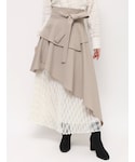 【トップス】 控えめチュールがかわいい薄手のニット🧶 オン・オフショルで着られます✨️ 肩の細リボンもかわいい♡ 【スカート】158cm Sサイズ着用 dazzlinならではのアシメスカート! ベルト部分が太めなのでウエストすっきり細見えします♪