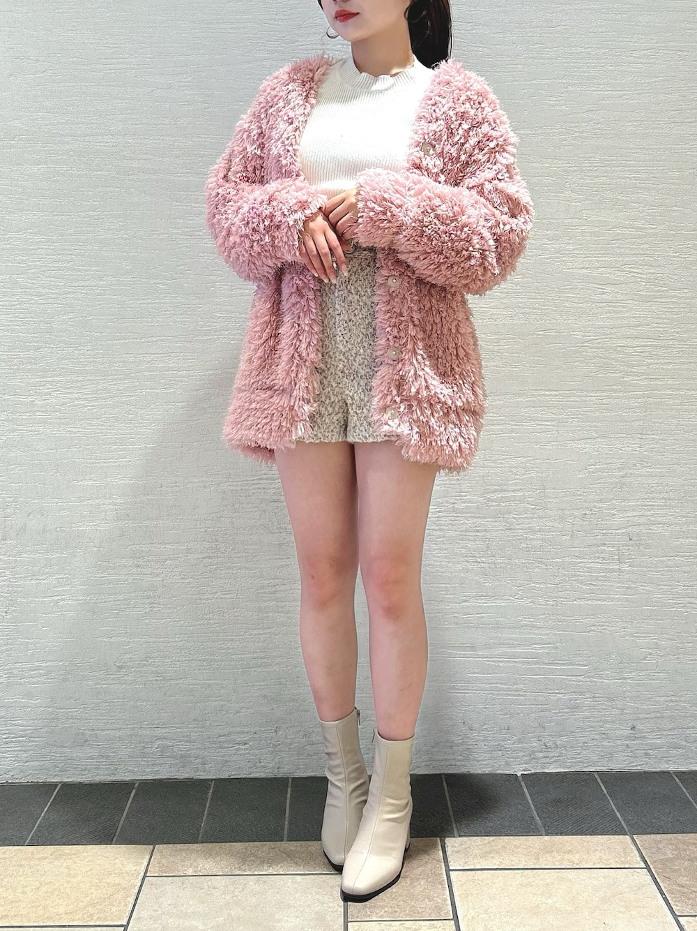 【カーディガン】 フワフワキラキラあざとかわいいカーディガン♡ ボリューミーなのでミニ合わせでスッキリ見え🙆🏻♀️ 【パンツ】 158cm Sサイズ着用です セットアップでも着ていただけるツイードショートパンツ✨