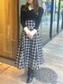 【トップス】 全くチクチクせず優しい肌触りのニットです✨️ブラックとアイボリーで配色されてるので大人可愛い雰囲気になれます! 【スカート】 dazzlinならではのダブルリボン! かなり調節が効くのでトップスに合わせて着用いただけます◎ 細見え間違いなしです!
