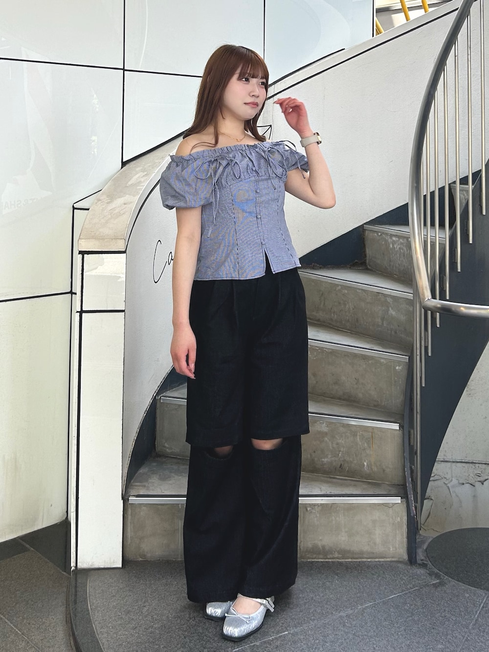 【トップス】 オンショル、オフショルで着られます🙆🏻♀️🩷 スカート合わせでフェミニンに、アウトスタイルにパンツ合わせで韓国っぽコーデにもなる万能ブラウスですෆ⸝⸝꙳ 【ボトムス】158cm / Sサイズ ウエスト部分がゴムになっているので着心地抜群!! 私が着用しているブラックはデニム素材なのでスポーティーすぎずキレイめにも着用頂けます✨️ ワイドシルエットなのでトップスはコンパクトなものを合わせると🙆🏻♀️