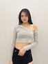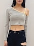 yumeno(GYDA)のTシャツ/カットソー「GD BICOLORワンショルダーデザインショートトップス」を使ったコーディネート