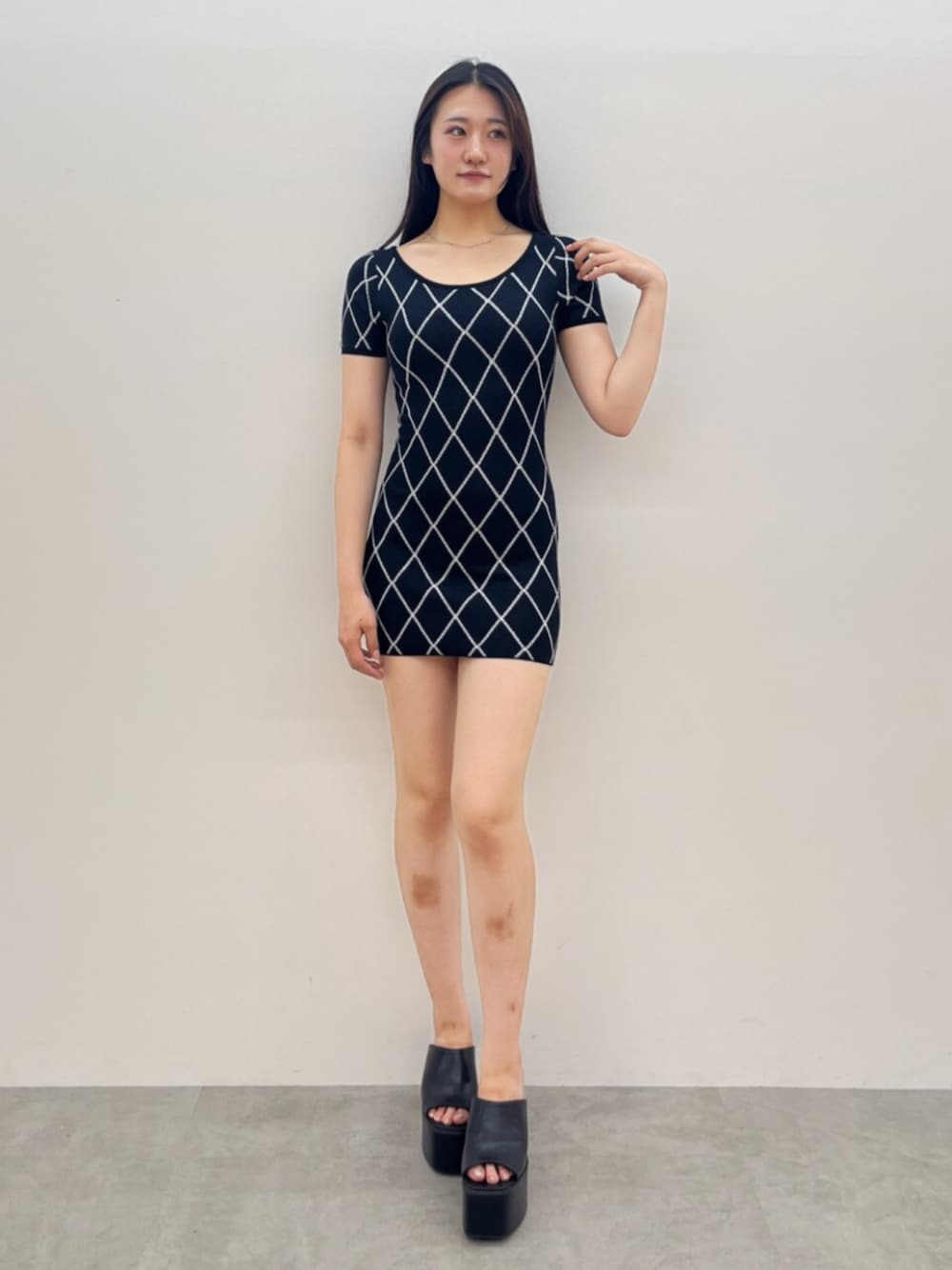 【ワンピース】 背中の部分がクロスになっていて、後ろから見ても可愛いワンピースです👗💕 ダイアのような模様が縦に入っているため,細見えさせてくれるワンピースです😚 【インナー】 調節可能なブラトップです! しっかり下から支えてくれるの盛れます! そして、ゴムがしっかりしているので、ズレたり落ちたりする心配ないです! 【シューズ】 高低差のないサンダルで、とても軽く足に負担がかからないのでとても履きやすいです!! ちなみに24cmの私はLを着用しています🫶🏻