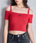 yumeno(GYDA)のニット/セーター「SymmetryGYDA オフショルストラップハーフスリーブニットトップス」を使ったコーディネート