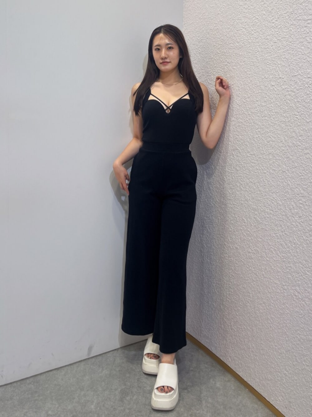 【ロンパース】 パット付きのロンパースなので、一枚で着用できます!暑い夏重ね着しなくていいところがおすすめポイントです!! そして生地感も肌触りが良く伸縮性があるので,窮屈感なく着用できます🖤 【インナー】 調節可能なブラトップです! しっかり下から支えてくれるの盛れます! そして、ゴムがしっかりしているので、ズレたり落ちたりする心配ないです! 【シューズ】 この厚底サンダルは高低差がないので足に負担がかからずとても歩きやすいです! ボリュームのあるシルエットが脚を華奢に見せてくれて激盛れします💗💗 ちなみに24cmの私はLを着用しています🫶🏻