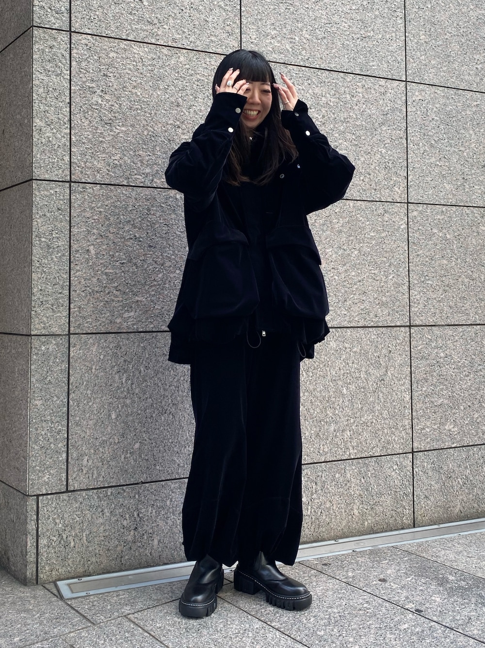 【アウター】 UN3D.では新鮮なベルベット素材のコート🧥サラッとデイリー使いできるデザインですが、ベルベットの光沢感があるのでカジュアルになりすぎず◎フードも取り外し可能なので気分に合わせて雰囲気が変えられます!168cmでもお尻が隠れ、中はゆとりがあるので分厚いニットを重ねても着て頂ける優秀コートです♪ 【シャツ】 お袖に中綿が入っている冬でも着れるシャツ。フロント部分にデザインもあり、一枚で着てもとてもオシャレ✨袖口がゴムになっているのでシャツのかっちり感が苦手な方でもトレーナー感覚で着ていただけます! オーバーサイズなので168cmで36サイズで大丈夫でした! 【ボトム】 コートと同素材のパンツ。裾がバルーンになっている珍しいデザインで、シンプルなトップスに合わせてもモード感抜群です!普段のUN3D.のボトムより丈感が短いので小柄な方でも大丈夫なサイズ感です!