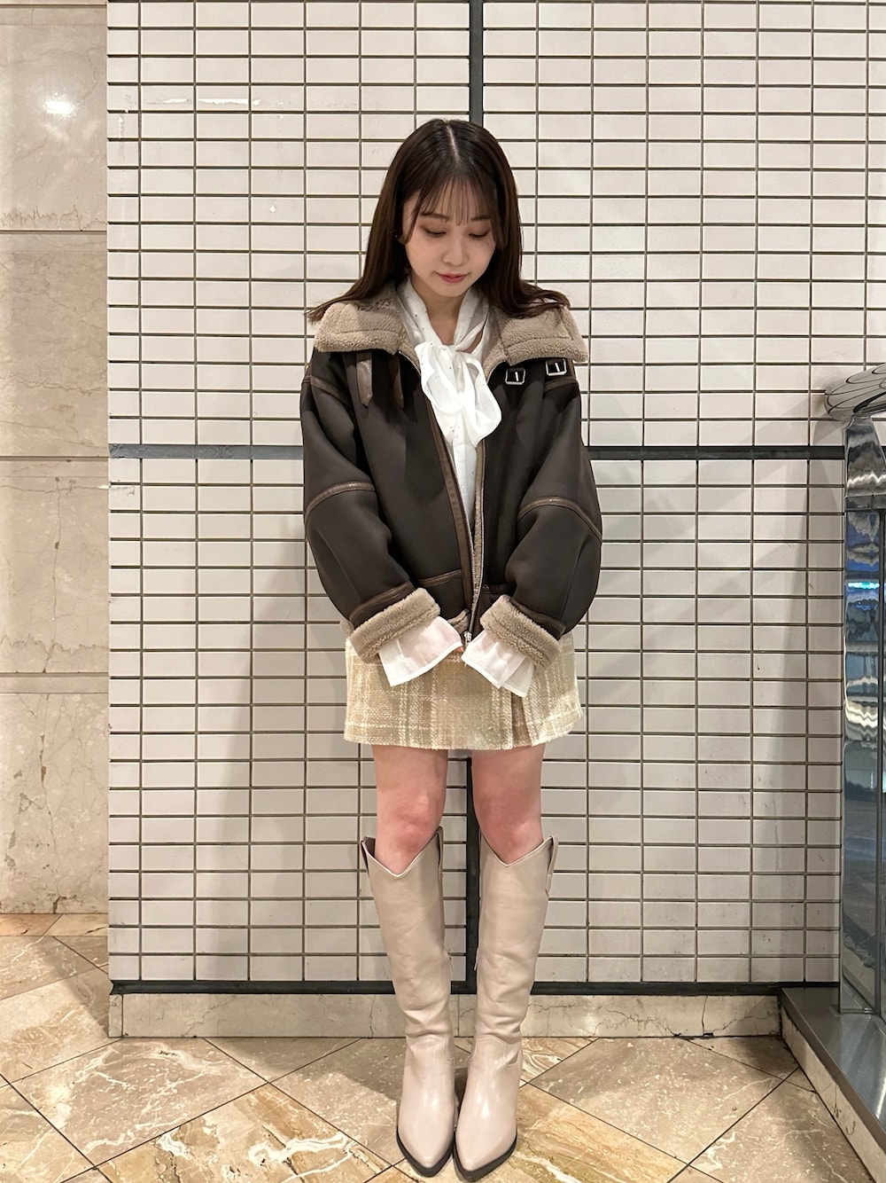 大人カジュアル❕ブラウンコーデ❕🤍🤎 🍂アウター 大きめシルエットがかわいいブルゾン! 私は暗すぎず明るすぎずなブラウンをチョイス!✨✨ 内側もボア素材でもこもこ暖かい!◎ カジュアルな雰囲気ですが、襟と袖口のボアがかわいらしさもプラスしてくれるので、1枚羽織るだけでしっかりまとまります!✨✨ 🍂ブラウス ビックリボンがかわいい! ベースはシンプルなブラウスなので派手にならずに使いやすい!◎ タイのリボン部分にだけ小さなストーンが散りばめられているため、控えめなキラッと感が大人っぽい印象に🤍🤍 🍂スカート チェックが秋冬らしさ全開‼︎⭐︎ ベージュは何色とも合わせやすく、柄の主張も控えめなので子供っぽくなりにくいです!◎◎ 私はSサイズ!ベルト穴調節もあるので、いっぱい食べても安心です!✨ 🍂ブーツ Vカットがクールなウエスタンブーツ! ステッチが控えめなので、ちょうどいいウエスタン感!✨✨ 寒い時期はミニ丈➕ロングブーツが映えてかわいいです!♡