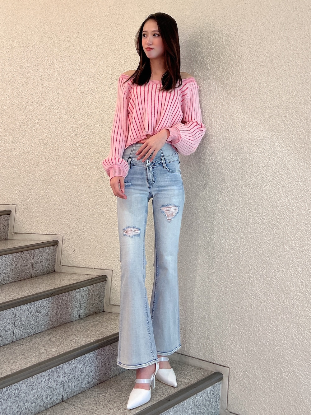 shiori(GYDA)のデニムパンツ「ハイウエストBACKクロスダメージフレアデニムパンツ」を使ったコーディネート