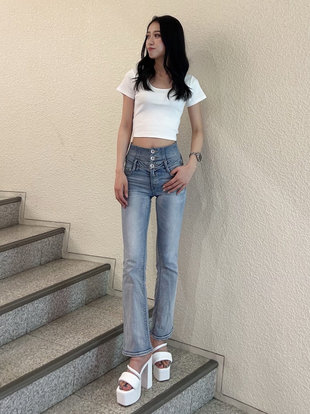 【トップス】 毎年大人気のレオパードのバックリボントップスです! 前はシンプルですが後ろの大胆なレオパードリボンが可愛いです✨ 【ボトムス】 バッククロスのフレアデニムパンツです! ショートトップスと合わせるとバッククロスが見えて可愛いです! 168cmでXSサイズを履いています! くるぶしが隠れるくらいの丈感です! 【シューズ】 クッション性のある厚底サンダルです! ふわふわのパディングデザインなのでとても歩きやすいです! 24.5cmでLサイズを履いています!