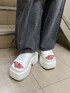 【トップス】 胸元のフロント部分にキラキラのロゴがデザインされたショートトップスです! シンプルなのでどんなボトムスにも合わせやすいです☺︎ 【ボトムス】 ハイウエストの程よいダメージ入ったbijouのキラキラデザインワイドデニムです! 生地が薄めでとても履きやすくキラキラがトレンド感あって可愛いです☺︎ 168cmでMサイズを履いてくるぶしが隠れるくらいの丈感です! 【シューズ】 シンプルな厚底サンダルです! 全く高低差がなくとても歩きやすいです! 24.5cmでLサイズを履いています!