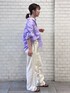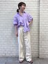 【トップス】店頭でも人気のギャザーシャツ😆👏1枚で可愛く着れます💜サイドの紐はぎゅっと寄せて着るとバランス◎! 【デニム】今季イチオシデニムの一本です!👖158cm/24inch着用で、フラットなシューズだと裾たまるくらいの丈感でした◎夏らしいアイボリーが推し色です☺️🤍