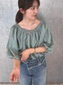 外薗杏奈(Ungrid)のシャツ/ブラウス「オフショルラメドビーハーフスリーブブラウス」を使ったコーディネート
