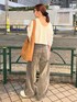 外薗杏奈(Ungrid)のTシャツ/カットソー「クロップドハニカムロングスリーブTee」を使ったコーディネート