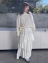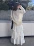 【インナー】1枚あると万能に着回せるオススメアイテム✨ タイトすぎないので着心地も良いです◎! 【ニット】刺繍の透かし柄が可愛いニット🥰春先はインナーに素肌で着てもチクチクせず着用いただけます✨ 【スカート】動きのあるフリルデザインがお洒落なスカート☺️カジュアルなスウェットと合わせても可愛いです💗シーズン問わず着れるのも嬉しいポイント◎
