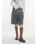 【トップス】 夏に着飽きて持て余してるTシャツをせっかくなら秋にも着たいなって方におすすめの着方です!!🩶 夏にせっかくお気に入りの物をゲットしたなら長く着たいですよね〜 わたしは中にレースなど入れて秋まで着るのがすごくオススメです◎ わたしはビックTにフード付きのレーストップスをレイヤードして流行りのスタイルできてみました! 中のレースは勿論オールシーズン使いやすいですし、生地も柔らかくサラッとしてるので朝晩の涼しい日にはすぐ使えます! Tシャツはオーバーサイズなのでミニで着たいかたはパンツをいれてミニワンピ風にしても可愛いですよ🩶🩶⟡.· 【ボトムス】 トレンドのハーフパンツ! jouetieのはZIPがついてるので、雰囲気をその日その日のテイストで変えれます! 私は少し開けて抜け感をだしました!普段足を出さない方はロングブーツや、レースタイツと合わせてZIPを少し開けてそこで肌見せすると一気におぼったく見えないので、ジップ付きおすすめです◎🩶🩶 わたしは少しウエスト部分が寂しかったのでベルトでオシャレにきてみました🩶🩶 【ブーツ】 足が23.5cmでこれはMサイズ着用しております! トレンドにずっと上がってるカバーブーツまだ、挑戦したことない方は是非!挑戦してみてほしいです(,,- -,,)⟡.·🩶