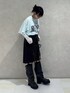 【トップス】 夏に着飽きて持て余してるTシャツをせっかくなら秋にも着たいなって方におすすめの着方です!!🩶 夏にせっかくお気に入りの物をゲットしたなら長く着たいですよね〜 わたしは中にレースなど入れて秋まで着るのがすごくオススメです◎ わたしはビックTにフード付きのレーストップスをレイヤードして流行りのスタイルできてみました! 中のレースは勿論オールシーズン使いやすいですし、生地も柔らかくサラッとしてるので朝晩の涼しい日にはすぐ使えます! Tシャツはオーバーサイズなのでミニで着たいかたはパンツをいれてミニワンピ風にしても可愛いですよ🩶🩶⟡.· 【ボトムス】 トレンドのハーフパンツ! jouetieのはZIPがついてるので、雰囲気をその日その日のテイストで変えれます! 私は少し開けて抜け感をだしました!普段足を出さない方はロングブーツや、レースタイツと合わせてZIPを少し開けてそこで肌見せすると一気におぼったく見えないので、ジップ付きおすすめです◎🩶🩶 わたしは少しウエスト部分が寂しかったのでベルトでオシャレにきてみました🩶🩶 【ブーツ】 足が23.5cmでこれはMサイズ着用しております! トレンドにずっと上がってるカバーブーツまだ、挑戦したことない方は是非!挑戦してみてほしいです(,,- -,,)⟡.·🩶