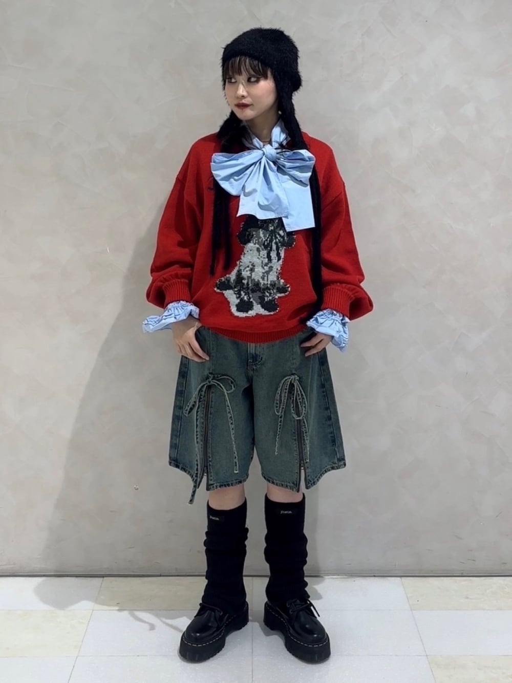 【ニット】 店頭でも大人気ワンチャンニット!!! ワンチャンが大きく描かれており、目を惹きますよねー!!!!🐶❤️🩹❤️🩹 1枚できてもラフに可愛くオシャレできますし、インナーにレーストップスや、タートルネック、私が来てるようなリボンシャツとかいれても可愛いく着れます!!袖からフリル出したりするのも、また違うお洋服に見えて、見た目のわりに自分でアレンジして可愛くきれるのでオススメです❤️🩹❤️🩹 【ボトムス】 ジップ付きハーフパンツ!! お好みで抜け感をだせるハーフパンツになっているので低身長さんには合わせやすいハーフパンツになっています!!🖤🖤 ハーフパンツだとおぼったく見えるよ〜😭😭って方はこのハーフパンツのZIPを少し開けて肌見せすることで抜け感出せておぼったくなる感じもなくなります!! トレンドのハーフパンツ1枚持っておくと雰囲気がでてサイコーに可愛いですよー!!⸝⸝ʚ̴̶̷̆ ̯ʚ̴̶̷̆⸝⸝❤️🩹