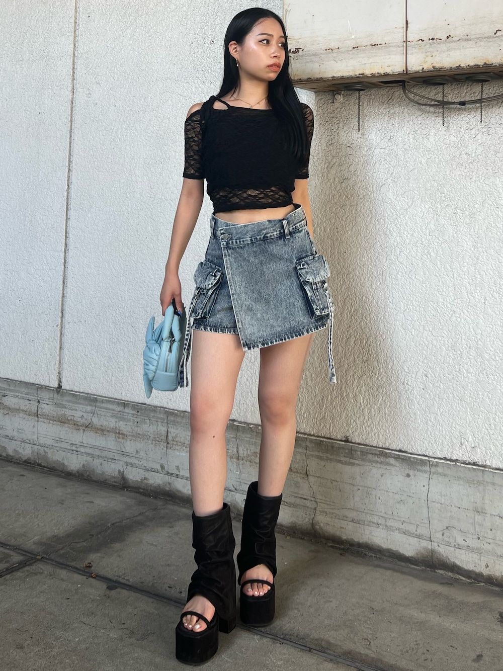 栗原あいり(EMODA)のTシャツ/カットソー「レーススキンフィットトップ」を使ったコーディネート