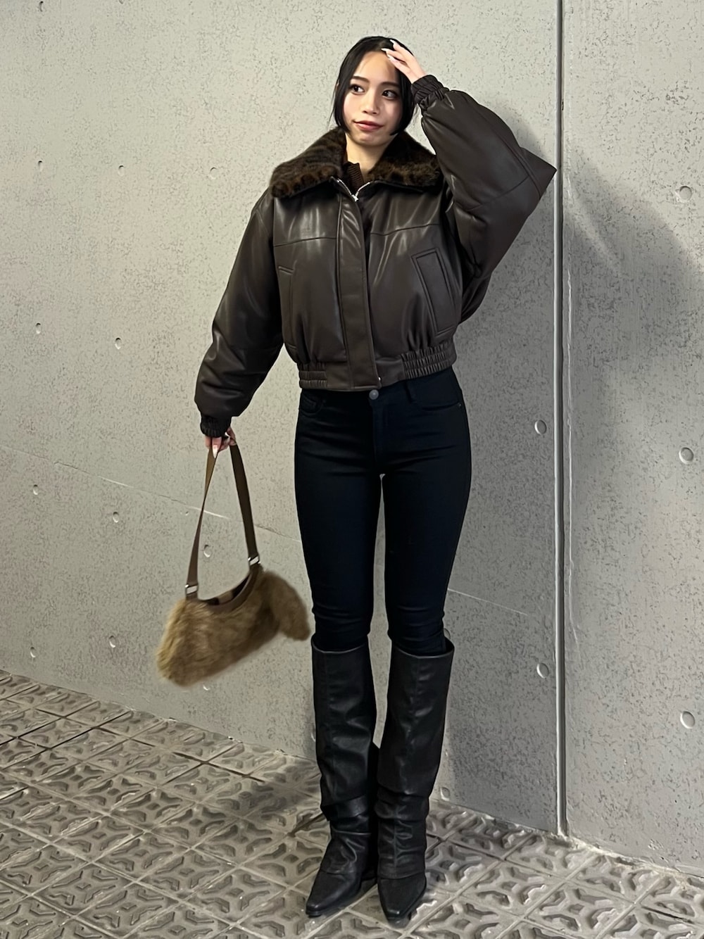栗原あいり(EMODA)のブルゾン「フェイクレザーブルゾン」を使ったコーディネート