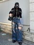 フーディー 肩のところが空いていて抜け感が出せるアイテムです! ボトムス ダメージ加工が入っていてカジュアルですが、ポケットにレースが付いていて女性らしく履けます! シューズ 24.5cmLサイズ履いています!