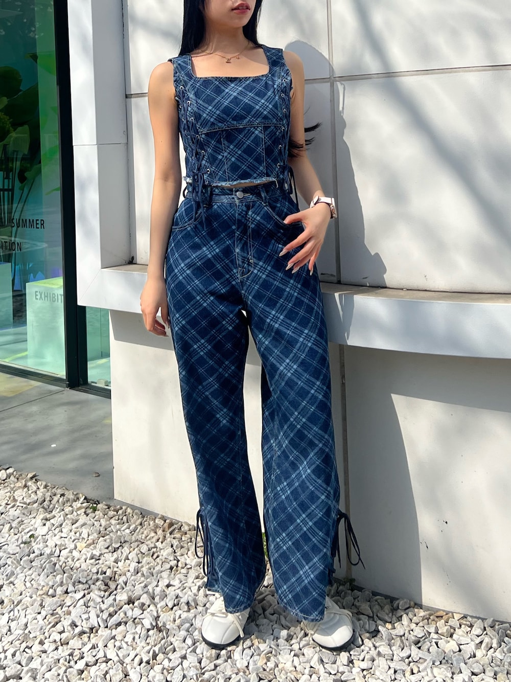 栗原あいり(EMODA)のタンクトップ「サイドレースアップデニムビスチェ」を使ったコーディネート