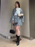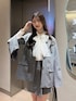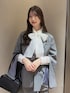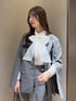 こなれ感のあるsetupコーデ🏷 ♡着回しアイテム→ジャケット/トップス/ボトムス 【アウター】 ベーシックな形で使いやすいジャケットです!袖はファスナーで開閉可能で2Wayのスタイリングが楽しめます◎今回は開けて着用しました✨️ 【トップス】 シアー素材で春らしいボウタイブラウス🎀袖の部分は肌が透けて見えて大人可愛い印象になります!リボンは取り外し可能です!リボンを外して第1ボタンを開けて着ると甘さが抑えられて抜け感が出るのでこちらもオススメです⸝⋆ 【ボトムス】 ジャケットと同素材なのでsetupで着用可能です!スカパンなので安心です◎腰部分のベルトデザインや裾のチャームなどがポイントになっており、ボトムス単体でもデザイン性があり着回しができます🩵 【シューズ】 フィット感のあるミドル丈のブーツです!高めのヒールで脚長効果があります!24.5cmでLサイズがピッタリです✨️