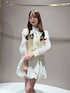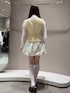 淡いイエローで春らしいキレイめコーデ♡ 【ワンピース】 ジレとバルーンスカートがドッキングされたミニワンピです! ジレ部分にはスパンコールも付けられているので 光に当たるとキラッとして可愛いです♡ 1枚でも着ることができ、中にインナーを合わせると長い期間着用できます! 【インナー】 シアーのボウタイブラウスをレイヤードしました☁️ パフスリーブやボウタイがコーデに華やかさをプラスします! 【シューズ】 ローファーデザインのサボできちんと感と抜け感をバランス良く出してくれます!24.5cmでLサイズ着用です!