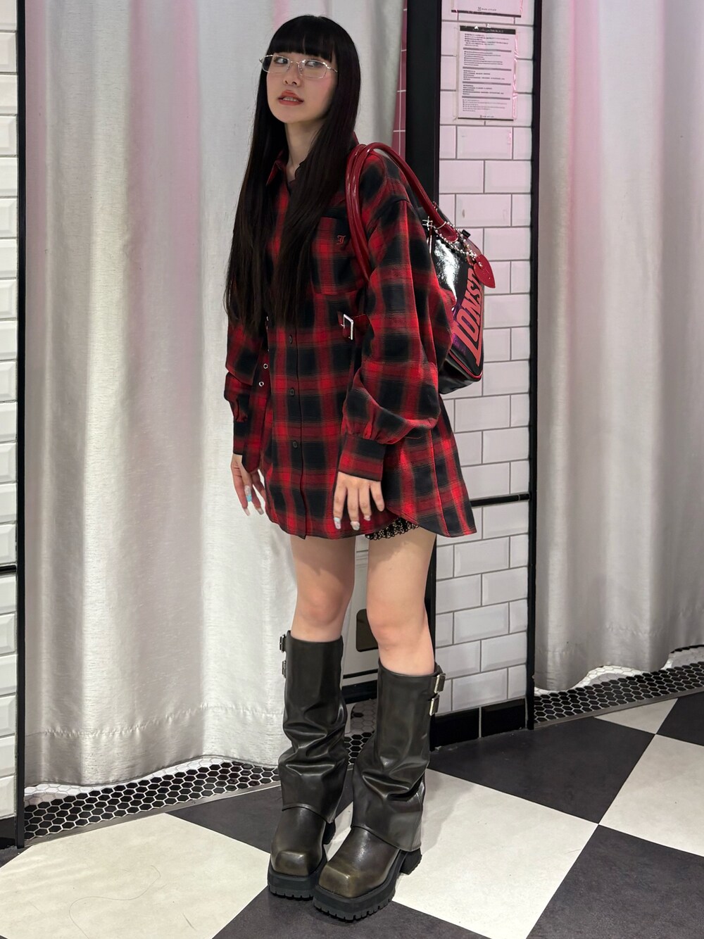 シャツ 156cmでおしりがすっぽり隠れる丈感です! ビックシャツは太ってみえがち💦 ウエストのベルトのおかげで細見え脚長効果ダブルで抜群✨️ バック 横幅とマチがしっかり確保されているので大容量👏 ブーツ 23.5cmでMサイズ着用です!