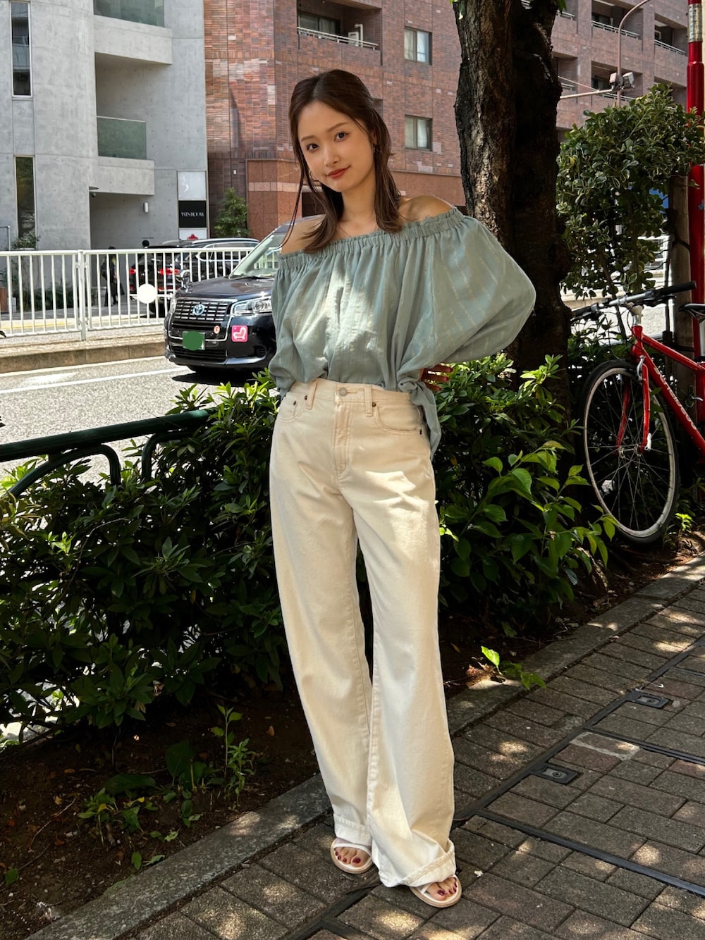 小島菜緒(Ungrid)のデニムパンツ「ライトオンスストレートデニム」を使ったコーディネート