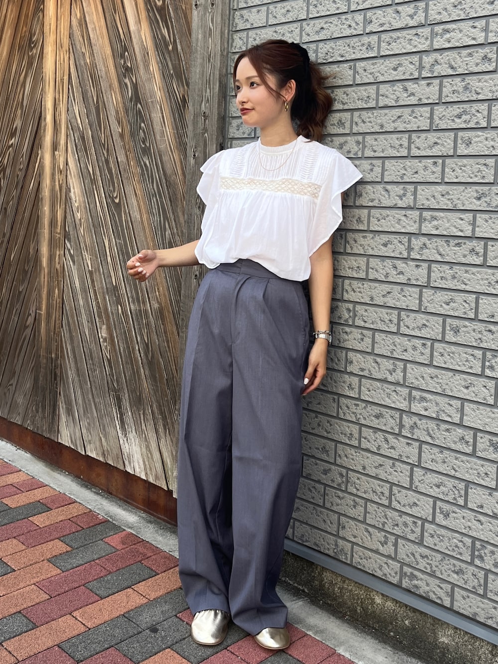 【tops】 毎年大人気のフリルブラウス♡ 薄手のコットンなので真夏でも涼しい1着😘 フリルデザインのお陰で肩は出ず、 二の腕をカバーしてくれるので着痩せします🥹 シンプルなデニム合わせが可愛いです‼︎ 【bottom】 艶感がTシャツ合わせなどでも 上品に見せてくれるアイテム💫 ウエストはしっかりフィットするので、 ヒップ周りもすっきり見えます🍃👌🏾 155cmでSサイズを着用しており、 少し地面についてしまうので、 スニーカーやヒールあるもので合わせると🙆 【shoes】 普段は22.5〜23cmでSサイズで◎ 柔らかいゴムを使用しているので、 靴擦れや締めつけ感なくラフに履いていただけます🌻 かかとを折ってフラットシューズとして使用しても🥿