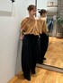 小島菜緒(Ungrid)のシャツ/ブラウス「フェイクスウェードハーフスリーブバルーンブラウス」を使ったコーディネート