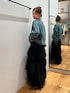 【tops】 古着っぽいロゴデザインが可愛い😻 いつものungridのスウェットよりは、 ビックサイズすぎないサイズ感なので、 小柄さんや抵抗ある方でも👍🏾 【bottom】 普段カジュアル多い私でも、 スウェットなどと合わせて挑戦できた1着💚 ランダムな切り替えが動きがあり、360度可愛い✨ 155cmでFサイズを着用しており、 フラットシューズでも地面につかない長さでした🙋