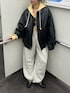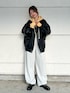 【outer】 毎年大人気なフェイクレザー🖤 たっぷりとした腕周りが女性らしく、 カッコよく決まりすぎないブルゾン❕ レザーっぽくリアル感ある柔らかい着心地が👍🏾 155cmでFサイズを着用しており、 お尻が隠れるルーズな丈感です😬 【tops】 ありそうでない絶妙な丈感😭 Wジップ仕様なので、 その日自分が着たい雰囲気で着用して頂けます💨 去年よりも丈感がやや長くなったので、 短いのに抵抗がある方でも全然大丈夫です! ちょっとした時に気軽に羽織れるので とっても万能〜💡 【bottom】 他と差がつくウエストのレイヤードデザイン🙏 程よいワイドシルエットで、 サイドの切り替えが可愛いポイント🩵 裾はドローコードがついているので、 身長関係なく着用して頂けます😎❕