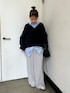 小島菜緒(Ungrid)のスウェット「Vネックデザインスウェット」を使ったコーディネート
