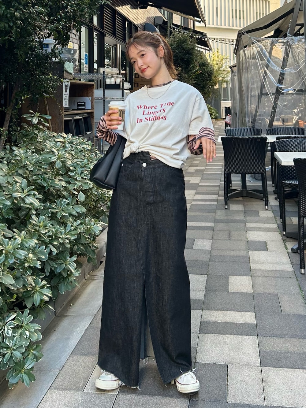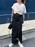【tops】 お手持ちのTeeと組み合わせ自由🆓 1枚で着用しても可愛いですが、 Tシャツとのレイヤードが今っぽくてオススメです✋🏻 【tops】 フォトプリントTee大好物〜🤍 前後ロゴなどのデザインが入っていて360度可愛い1着! 程よいゆとりあるサイズ感なので、 ノンストレスで日常使いしやすいです! 【bottom】 ウエストがungridらしい斜めデザイン! 短めのトップス合わせも可愛いです💕 155cmでSサイズを着用しており、 フラットシューズでも丈は気にならなかったです✨