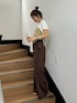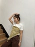 【tops】 着心地良く、毎年人気のシンプルTee🙆 SサイズとMサイズがあるので、 お好みの丈感で選んで頂ける仕様💫 Sサイズはお腹が見えないくらいのショート丈で、 Mサイズはしっかりインできる丈感です♡ そして柔らかい着心地が病みつきになる1着🤤 後ろ姿をスッキリ見せてくれる、 背中の切り替えデザインが推しポイント! 【bottom】 穿いた瞬間シルエットに感動しました✨ この絶妙なブリーチ加工の大人ブラウンが可愛い🤎 大胆なフレアシルエットではないので、 ストレートデニムっぽくも履きこなして頂けます😎 155cmで24inchを着用しており、 少し地面につきますが、 フレアなので気にならない長さでした◎