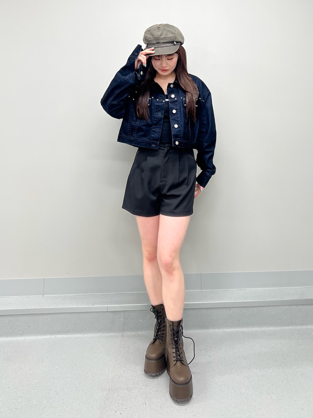 (ジャケット) MURUAらしいデニムジャケット。短丈でとても軽いです✨フリーサイズ! (ボトムス) タック入りのショートパンツ。サラッとしていて着心地抜群!163cmでMサイズ着用しています! (シューズ) 厚底8cm! 安定感抜群でとても履きやすいです。 23.5cmでぴったりでした。