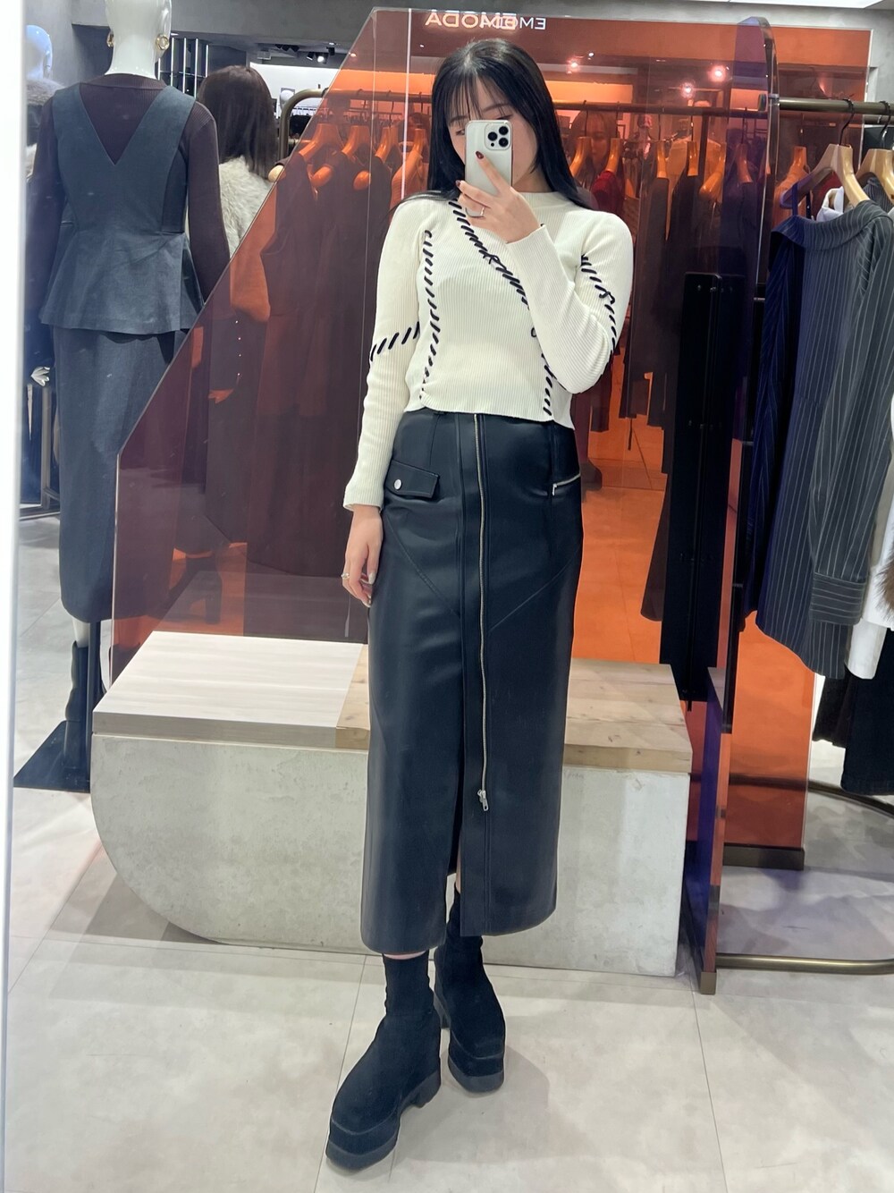 田中音羽(MURUA)のスカート「ZIPスリットフェイクレザースカート」を使ったコーディネート