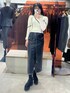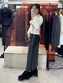 (Knit)フリーサイズ。アシンメトリーになっていて女性らしいKnitで着心地◎ (pants) 163センチでSサイズ。スリットが麗で歩きやすく柔らかいレザーなので使いやすいです◎ (shoes)厚底10cm。23.4cmでぴったりです。とても軽く普段使いにも◎