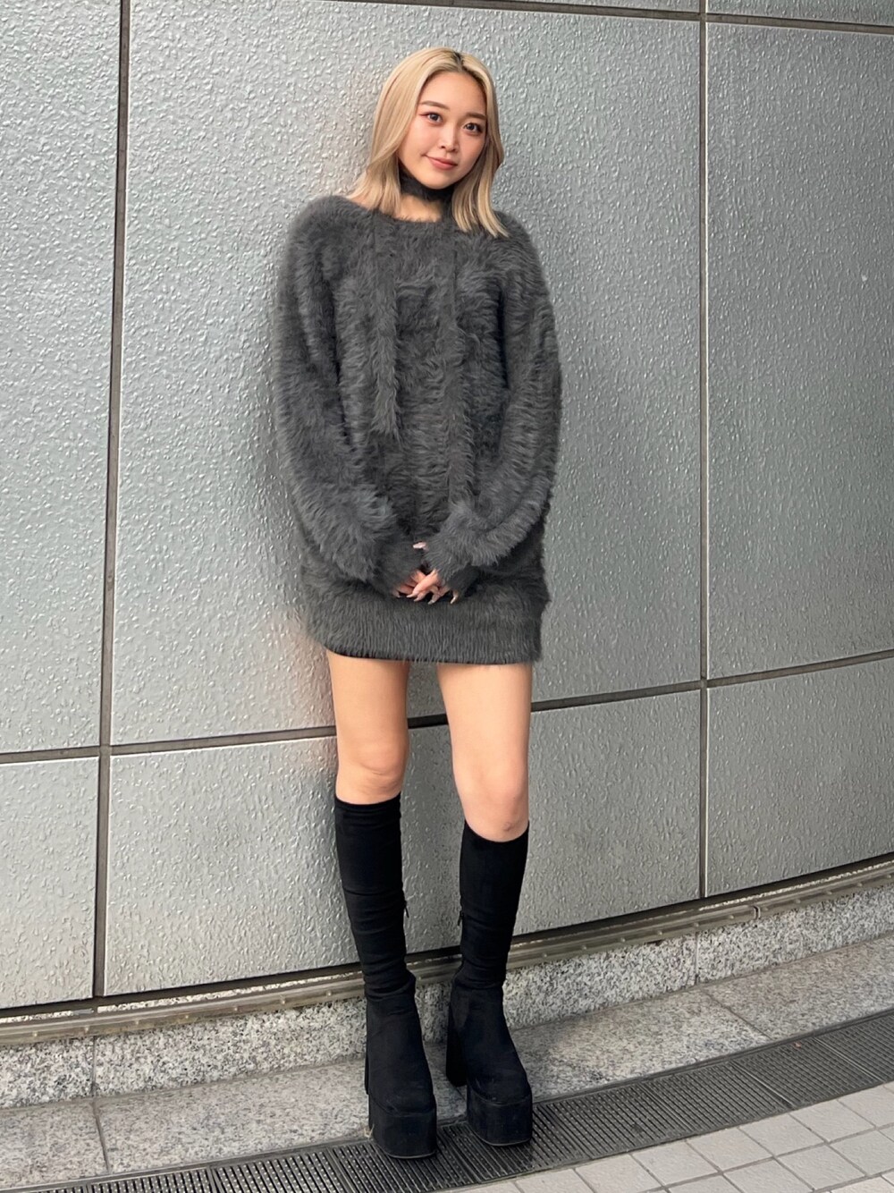 高麗春奈(EMODA)のワンピース「2WAYシャギーミニワンピース」を使ったコーディネート