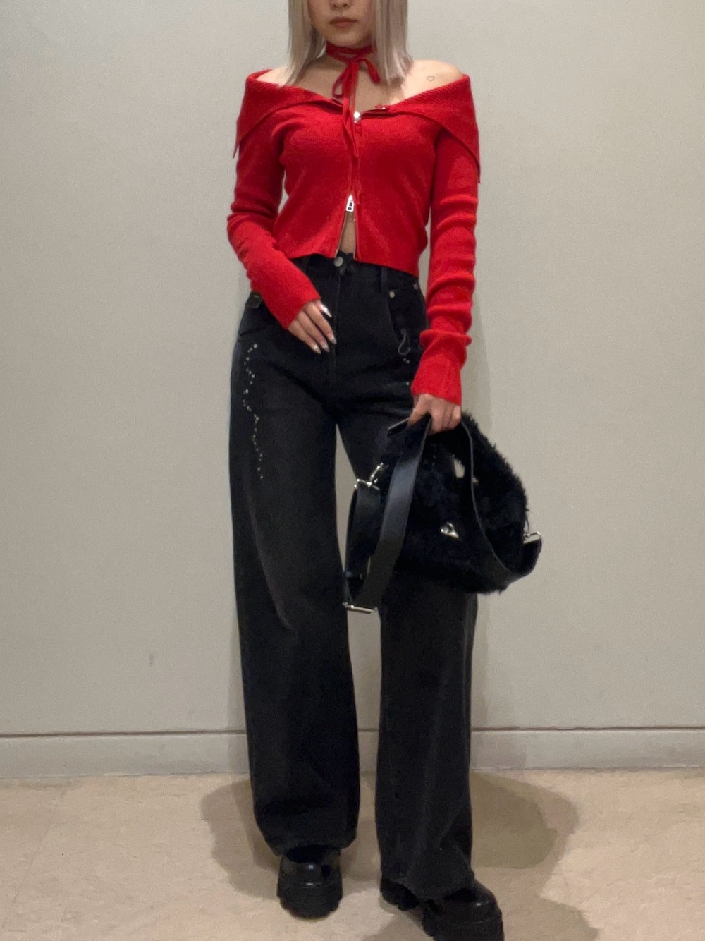 高麗春奈(EMODA)のニット/セーター「カラーオフショルダーストラップニット」を使ったコーディネート