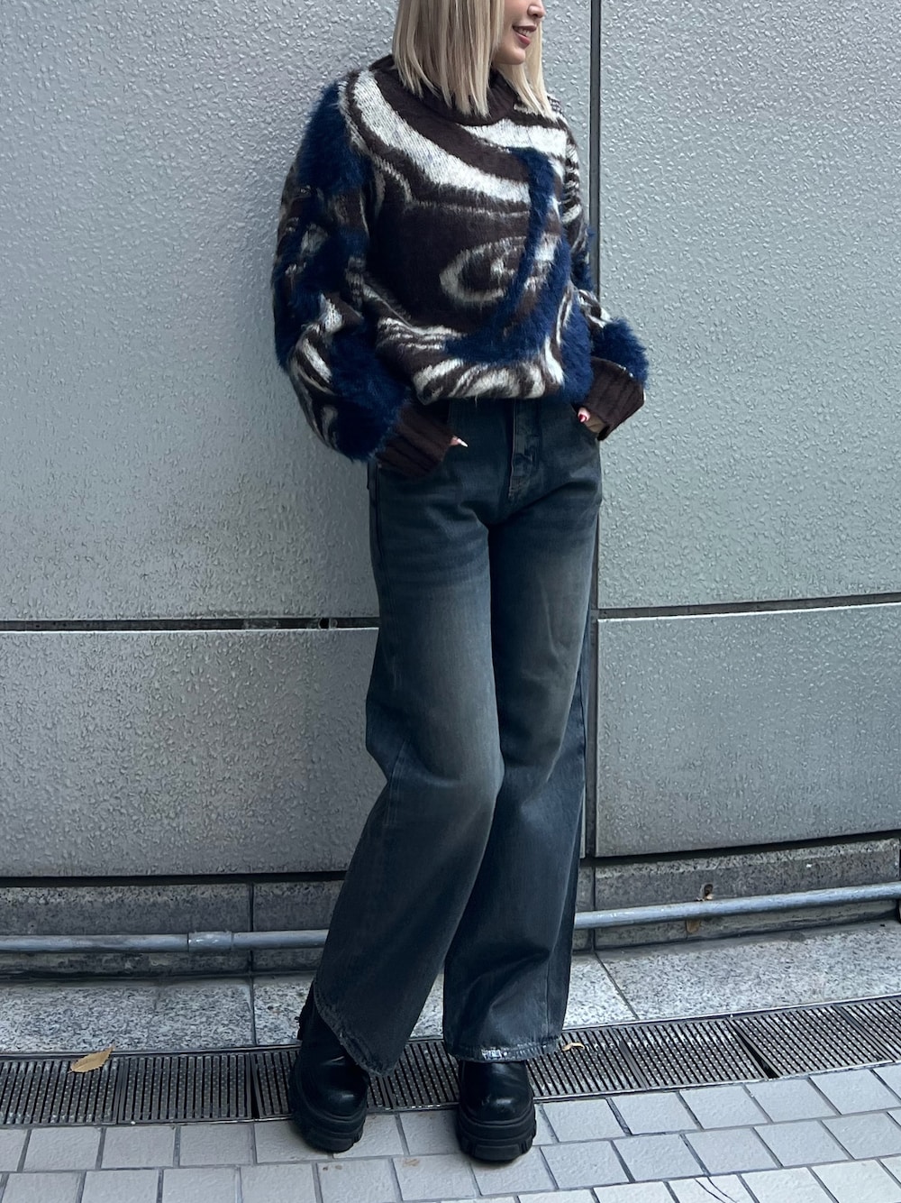 tops デザインがとっても可愛く、 青い部分がキラキラしていてとっても可愛いニットです!一枚で着ても可愛いですし、デニム合わせで中にしまい込んで着ても可愛いですよ❣️ denim 骨格ウェーブさん大優勝のワイドパンツです! 形わもちろん、とても綺麗に見せてくれます! 163cmでsサイズ着用しています! boots 普段24cmのLサイズを着用しています!
