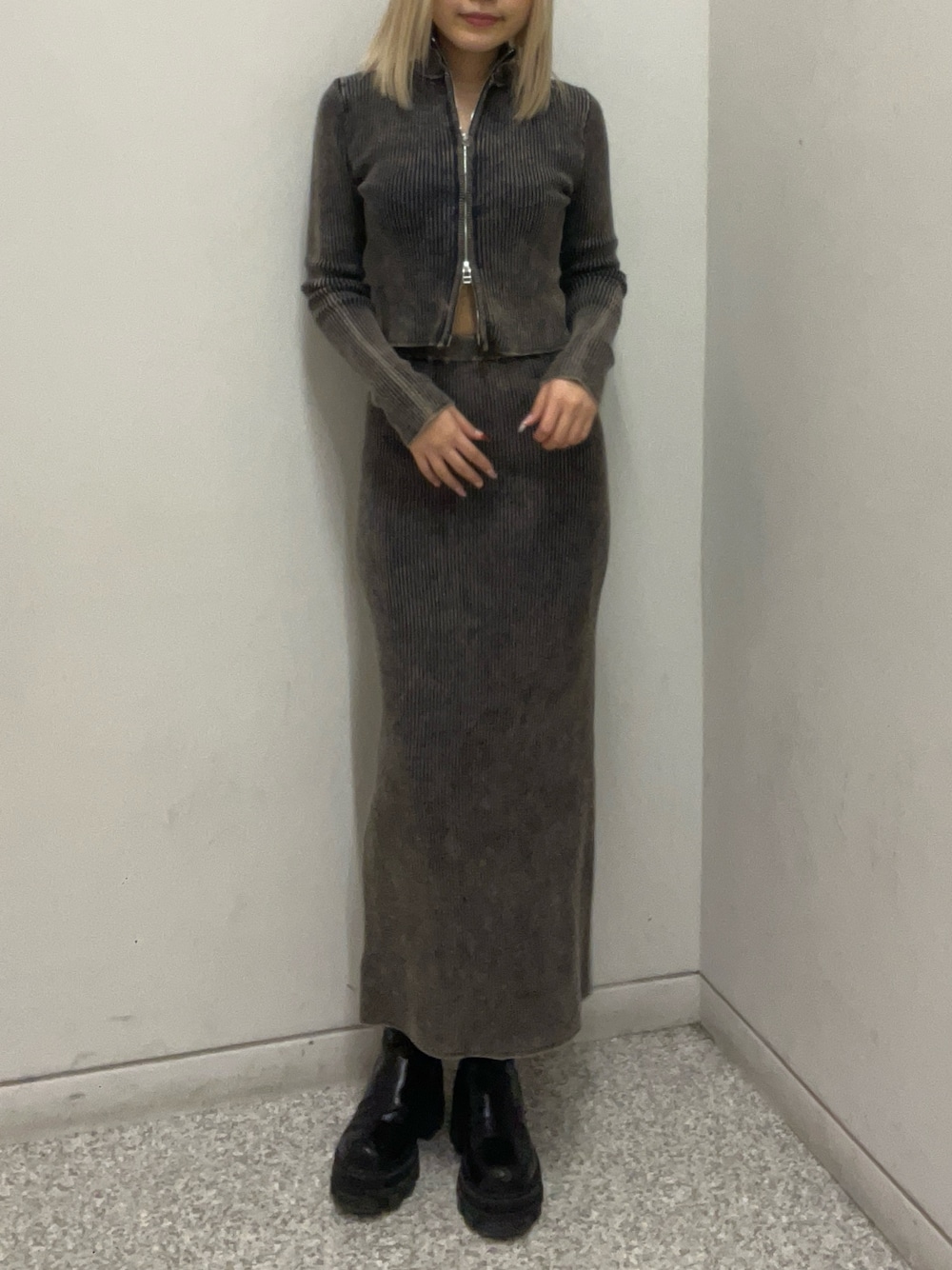 セットアップで着れるトップスとスカートです! 上下ぴったりとして着れるので、スタイルを綺麗に見せてくれます❣️ 別々できても可愛い商品です! スカートは、スリットがしっかり入っているのでとても歩きやすく動きやすいです! ブーツは、普段24cmのLサイズを着用しています!
